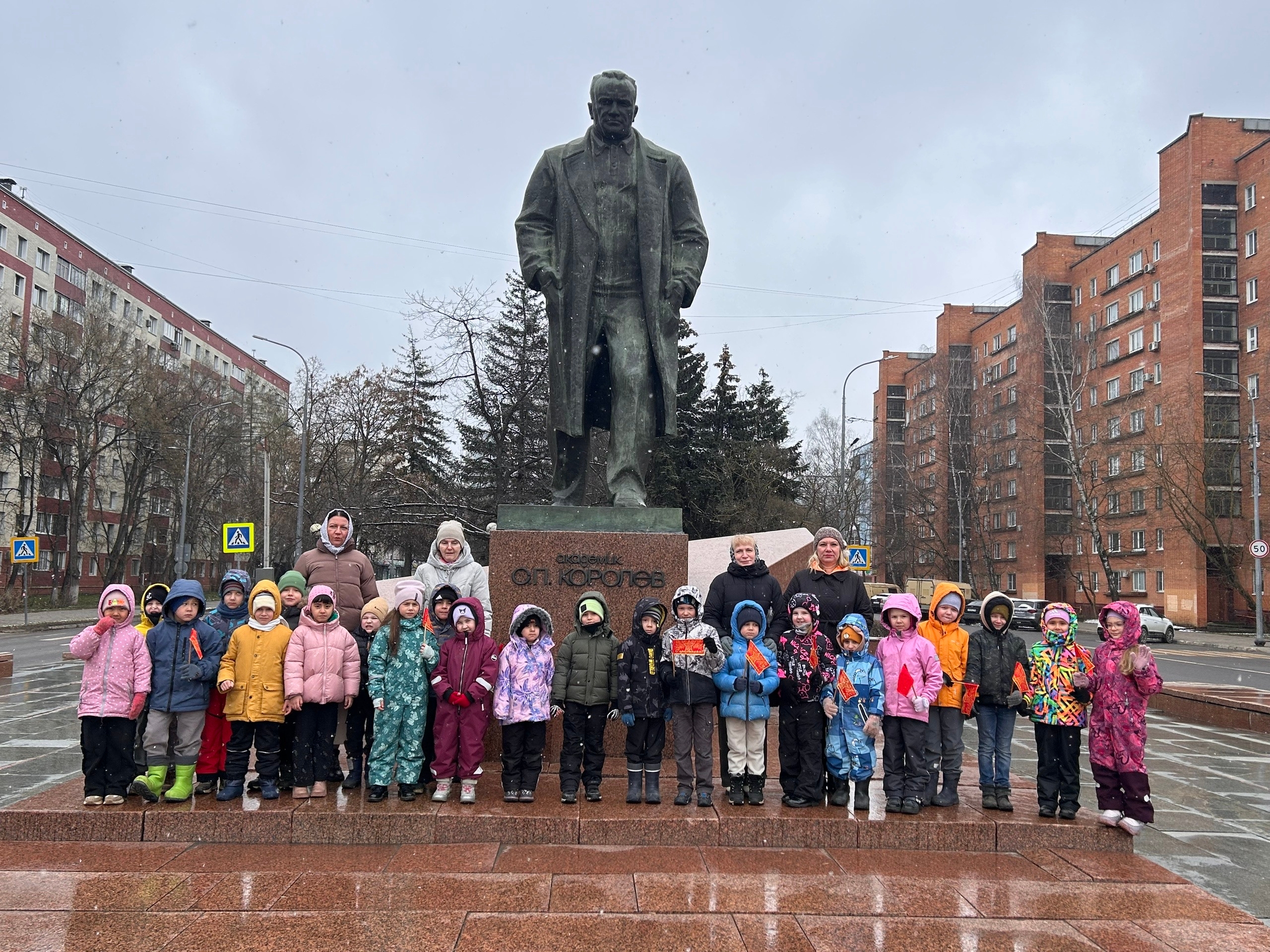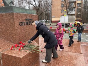 В честь 65 – той годовщины первого полёта в космос, ребята подготовительных групп дошкольного отделения МБОУ “Гимназии N17” почтили память главного конструктора ракет Сергея Павловича Королёва и возложили цветы к подножию памятника.