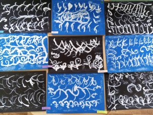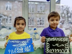 Ребята подготовительной группы на занятии по рисованию превратились в Дедов Морозов и нарисовали зимние узоры на окнах в нетрадиционной технике рисования с помощью искусственного снега и ватных палочек.